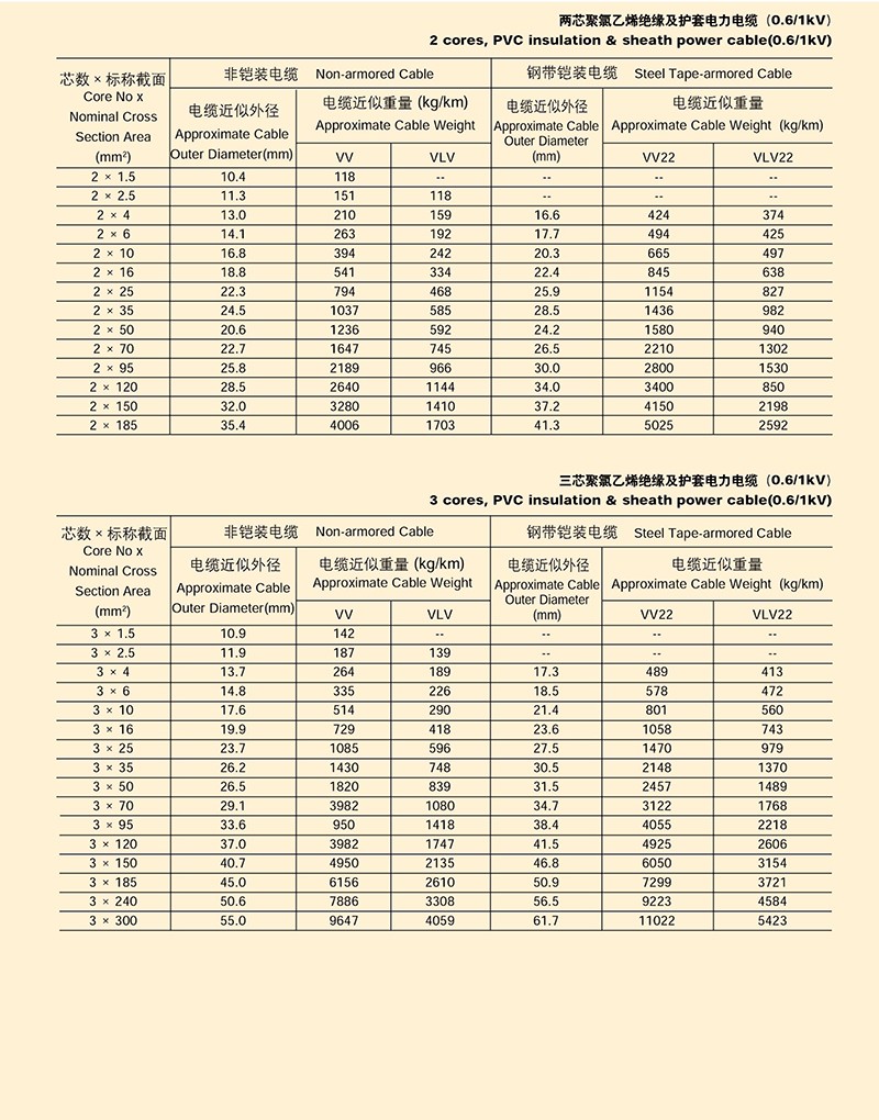 0.6/1KV聚氯乙烯絕緣電力電纜
